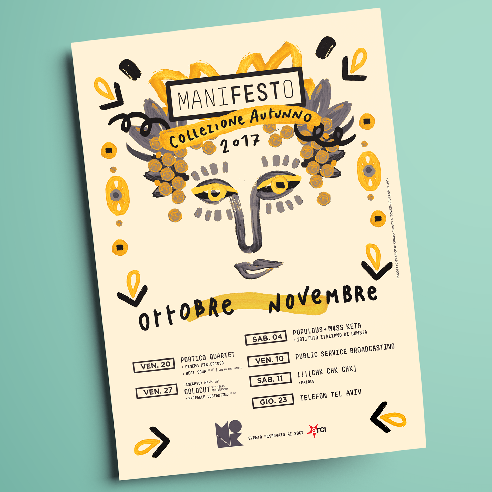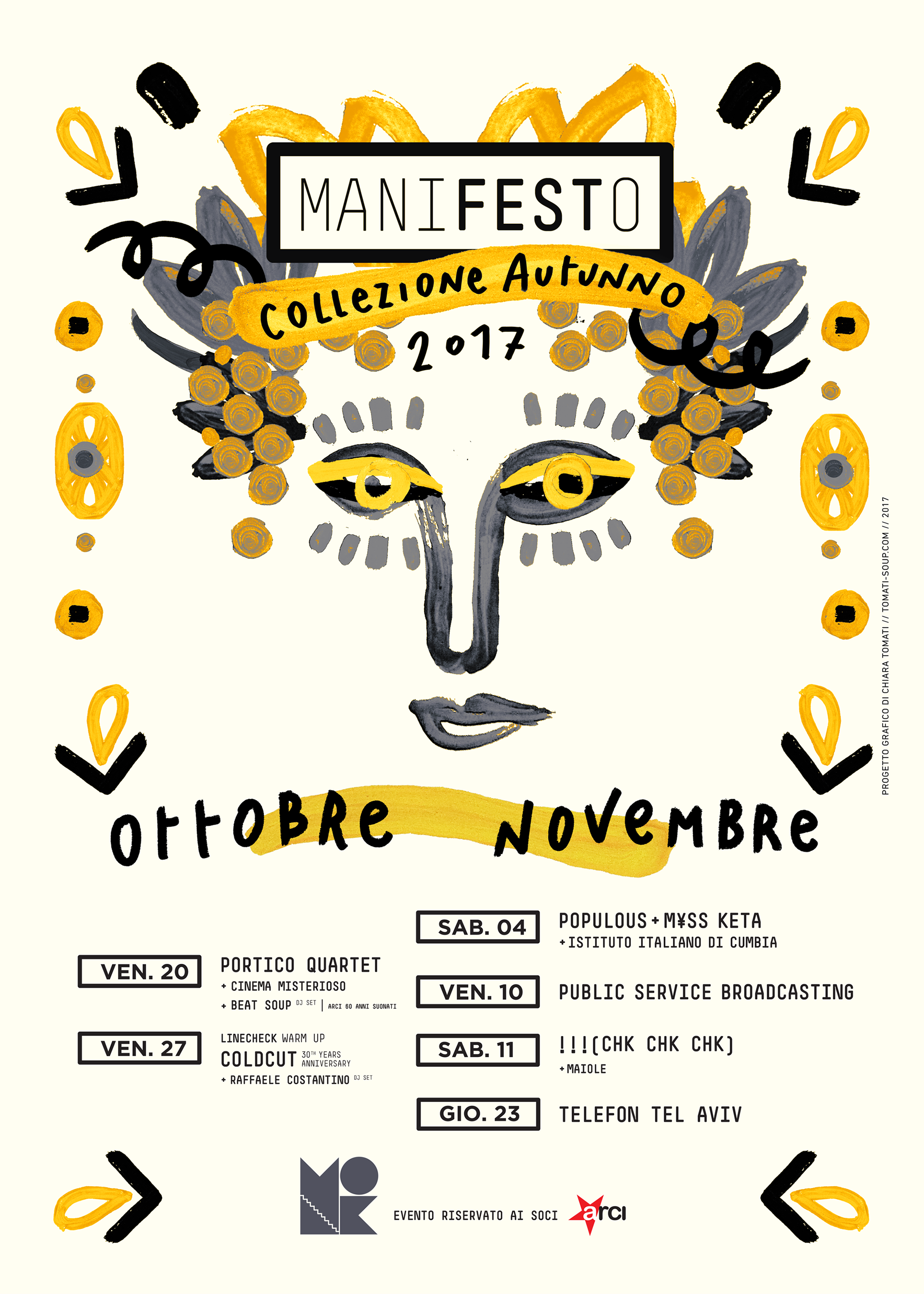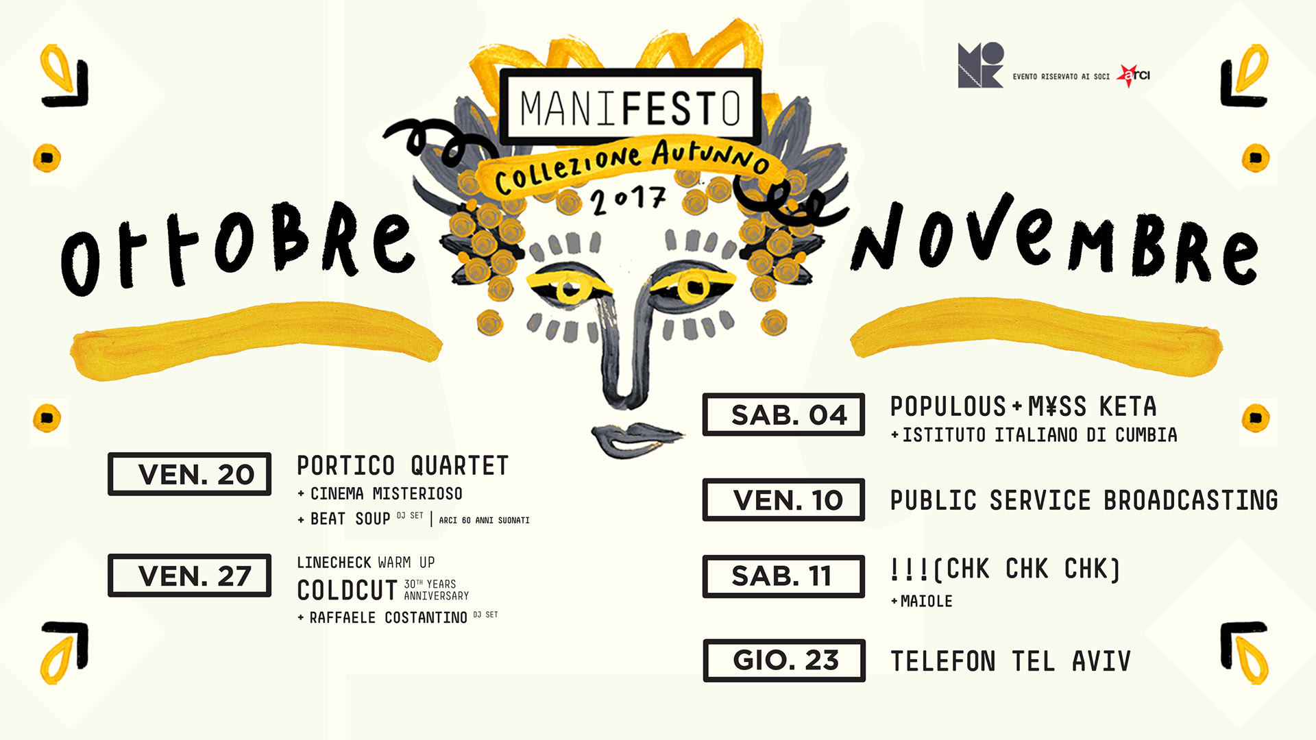 Nuova grafica perManifesto in versione autunnale! In attesa che arrivi la primavera, Manifesto presenta COLLEZIONE AUTUNNO, una serie di 6 appuntamenti alMONK, dal 20 ottobre al 23 novembre, per combattere i primi freddi e scaldarsi al ritmo dei nuovi dischi più attesi della stagione.